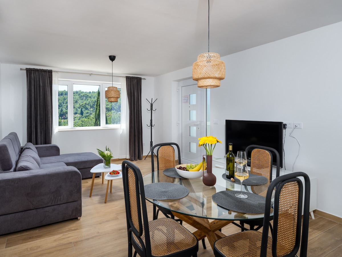 這間房源位於寧靜的 Mlini 村的一座小山上,擁有六間現代化且設備齊全的公寓。周圍有美麗的大自然、迷人的海灘和豐富的文化遺產,是尋找放鬆假期的家庭或一群好友的完美選擇。