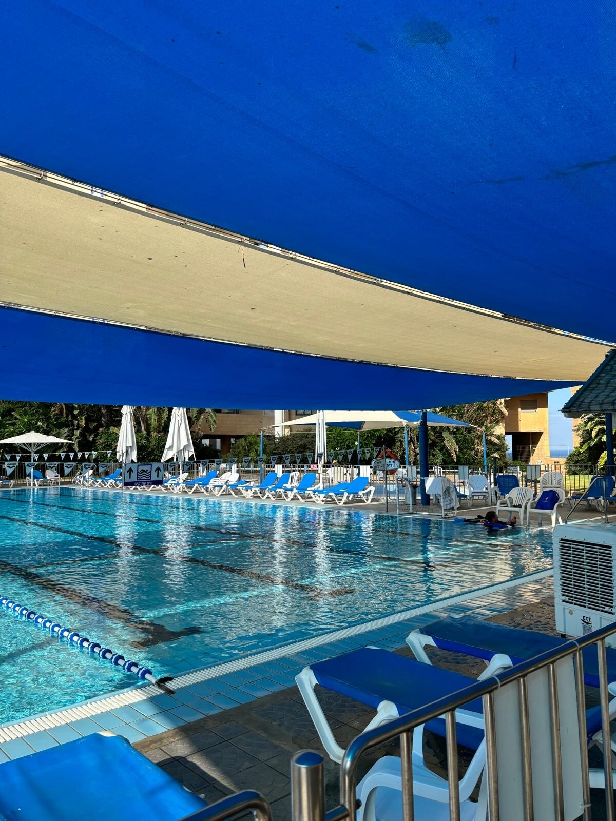 Private luxury apt with sea view at a beautifulll resort. Master bedroom & living room have large windows over ocean view, kids bedroom with two twin beds. The complex includes free swimming pools, jym, squash, tennis cour, lush well-kept gardening and playgrounds. 5 min drive from the old city & There are 2 big shelters in each level of the building. The apt is 15 meter from each of them.