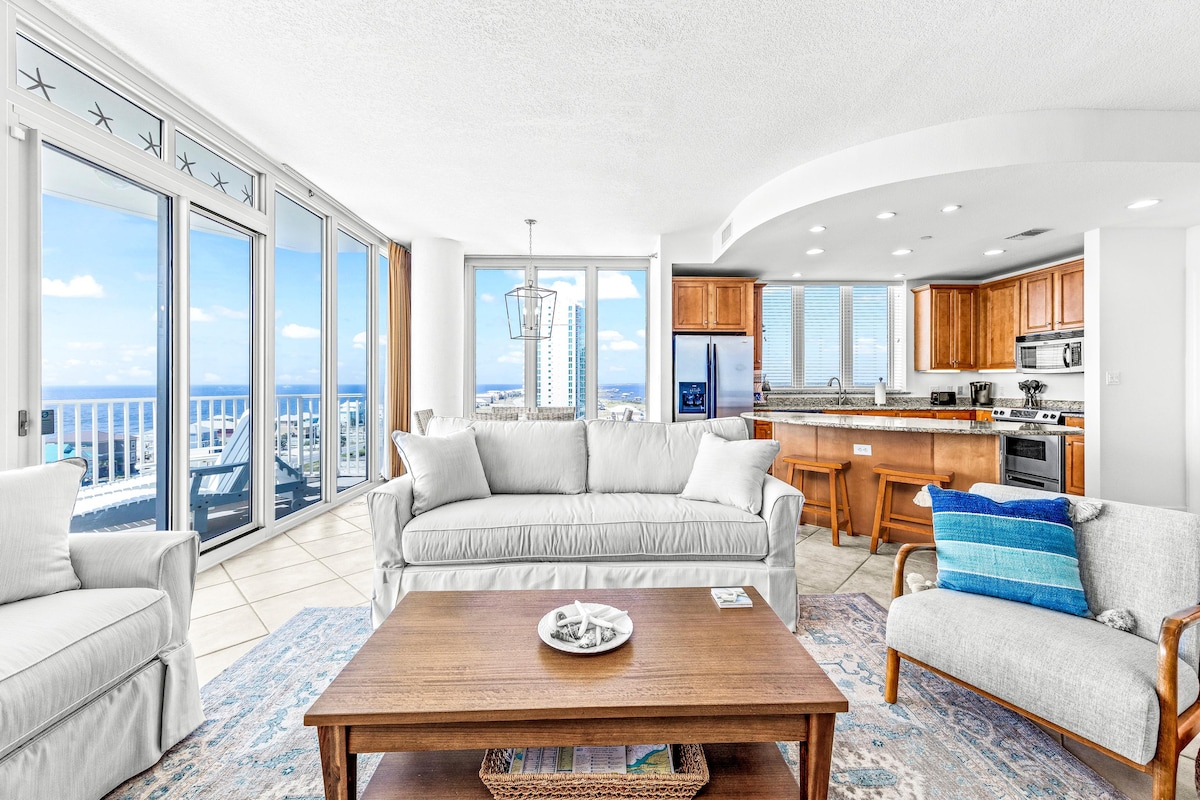 Bring the whole family together in this beautifully designed & thoughfull laid out beachfront condo. Offering spectacular views, multiple generous living areas & comfort for every generation. With room to gather & space to unwind, this home is perfect for grandparents, parents & kids or friend groups to share unforgettable beach days to enjoy together without feeling crowded. With panoramic views from floor-to-ceiling windows, this spacious condo offers breathtaking scenery sunrise to sunset.