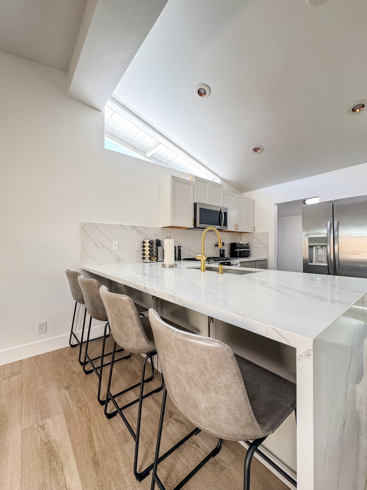 新建築2間臥室1間浴室現代隱藏寶石! 這間客用住房有自己的獨立院子、入口和車道。 在600平方英尺以下,在設計此空間時,沒有一塊石頭沒有任何變化。 這個開放式概念房源設有起居空間,配有沙發牀、50英寸Roku電視、4張椅子餐桌、遙控空調和暖氣系統。 全套廚房,配有微波爐、烤箱、冰箱和洗衣機/烘乾機。 全套浴室,配有浴缸和淋浴間。2間臥室, 1間配有標準雙人牀,另一間配有2張單人牀。