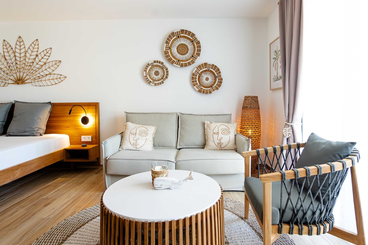 ✨ Start your mornings with a glowing sunrise and enjoy the relaxed island charm of this value-friendly beach escape. Decorated in the same cozy bohemian natural style as our premium apartment, this home is welcoming, comfortable, and offers a great base for enjoying Orient Bay. This studio is a more simple, budget-friendly option compared to our newly renovated premium sea view apartment, perfect for travelers seeking value.