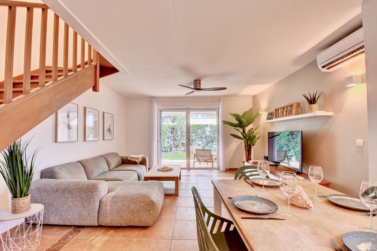 La Plage Bleue是一座美麗的小屋,就在海邊,非常適合與家人或朋友一起放鬆度假。 你將能享受到多項功能: • 岸邊的大型私人露臺 • 4 個兒童友好型安全泳池 • 2間寬敞的臥室 • 2間浴室 • 客廳和臥室都有空調 • 100 Mbps Wi-Fi • 設備齊全的廚房,備有洗衣機、洗碗機和烤箱 • 設有門禁的住宅,配備網球場和共用停車位。