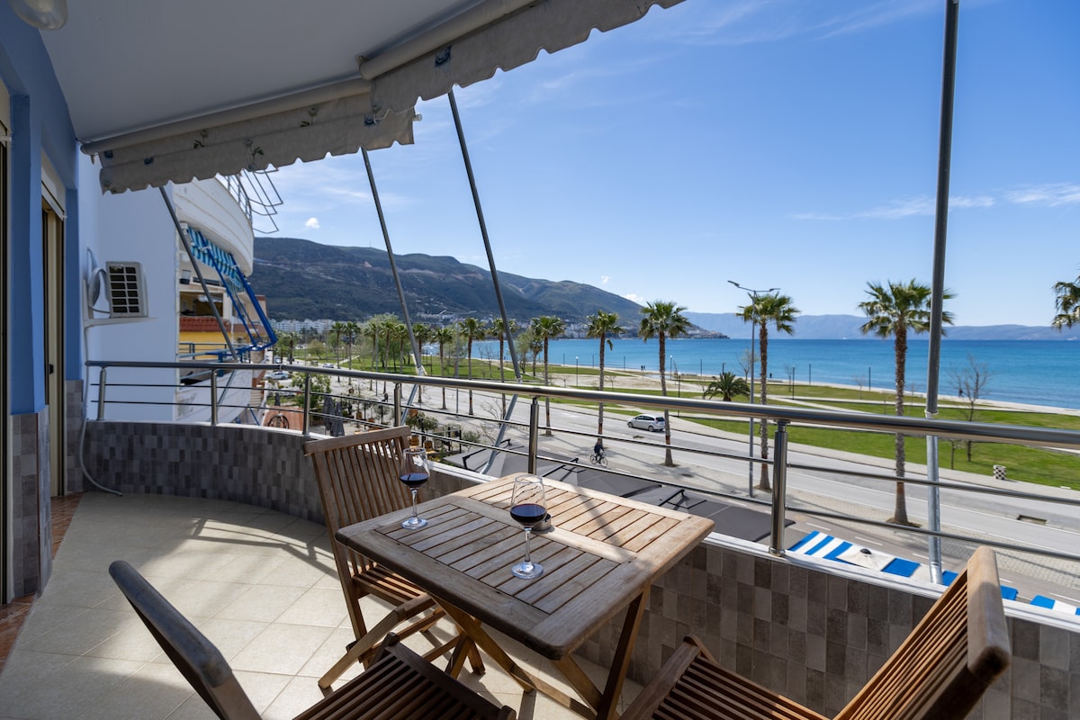 公寓距離Radhima海灘40公尺,四周環繞著山脈和大海。 公寓舒適,充滿光線。 適合大家庭或好友入住。 從這裡出發,您可以輕鬆抵達許多景點,租一艘船探索迷人的海岸線,在Llogora國家公園徒步旅行,並在Vlorë享受夜生活