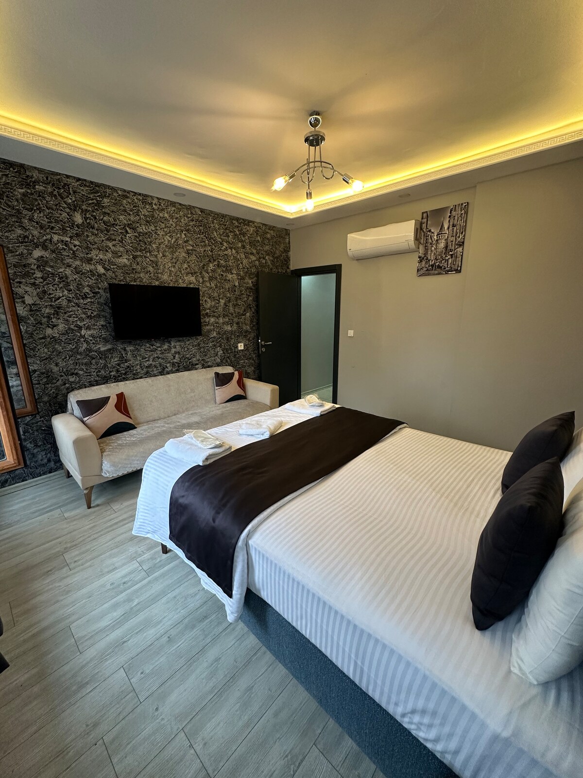在 2025 年 9 月 1 日,我們開放了這間套房,作為奧塔科伊區中心最好的現代套房之一,步行不到 2 分鐘即可抵達博斯普魯斯大橋,面積 60 平方公尺,非常適合兩人或情侶入住。 公寓內有舒適的臥室和優雅的客廳,配有寬敞的沙發。 現代家具和時尚裝飾營造出寬敞的氛圍。 大窗戶讓自然光線充足。設備齊全的廚房和智慧電視,確保舒適入住。