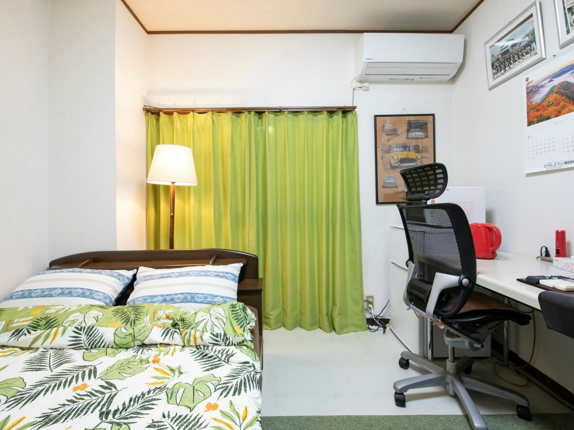 This is a guest house that is an iron-framed 3 stories building. Guest rooms are 1st floor. We (family of 3) live on 2nd and 3rd floors. The guest rooms will be comfortable for 3 people to stay. Three beds are available. Kitchen and full bathroom that guests can use exclusively are equipped on 1st floor. Other basic amenities are also there. No shared ones. (See pictures.) I am fond of talking with guests in English. Long stay recommended, because you can enjoy yourself staying in Japan.