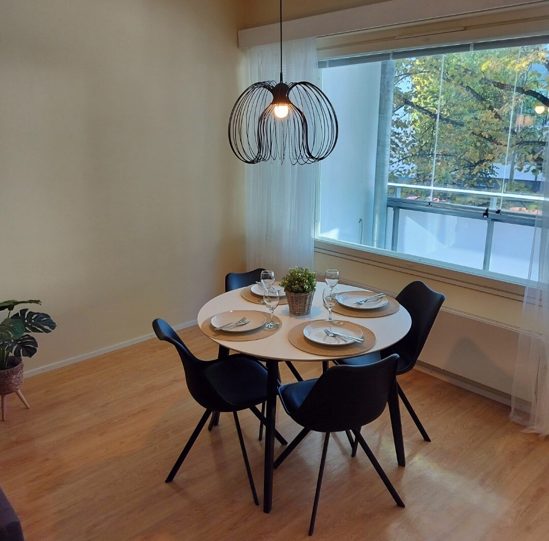 Tilava 55m² kodikas kolmio keskustassa, Rautatieasema ja matkakeskus vain 1 km päässä, joten kävellen kestää noin 10 minuuttia huoneistolle. Ilmainen pysäköinti lämmitystolpalla ja WIFI. Hintaan sisältyy: • Siivous • Liinavaatteet • Pyyhkeet • Kahvi ja tee • Tarjolla suihkusaippua, shampoo, hoitoaine, pyykinpesuaine ja käytössä pyykkikone. Sopii loistavasti työporukoille, pariskunnille, perheille, ystäväporukoille tai yksin matkustavalle. 24/7 S-market 1,5km K-Market 750m Ideapark 3,8km