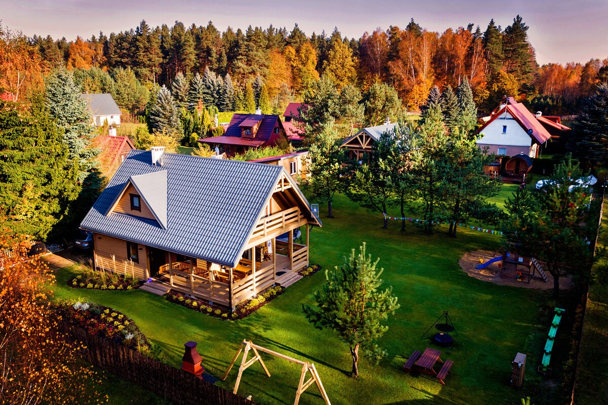 Winiec Family Houses全年都是度假屋,特別適合有小孩的家庭尋求和平、安靜、靠近大自然以及重視舒適和便利的家庭。 小屋靠近森林和風景如畫的湖泊,擁有美麗的島嶼。 有很多戶外活動-遊樂場、水上跑道、沙坑、大門和遊戲室。 小屋配有暖氣,配有壁爐、配備洗碗機的廚房、烤箱、鍋爐、可收看HBO Max和Prime的電視