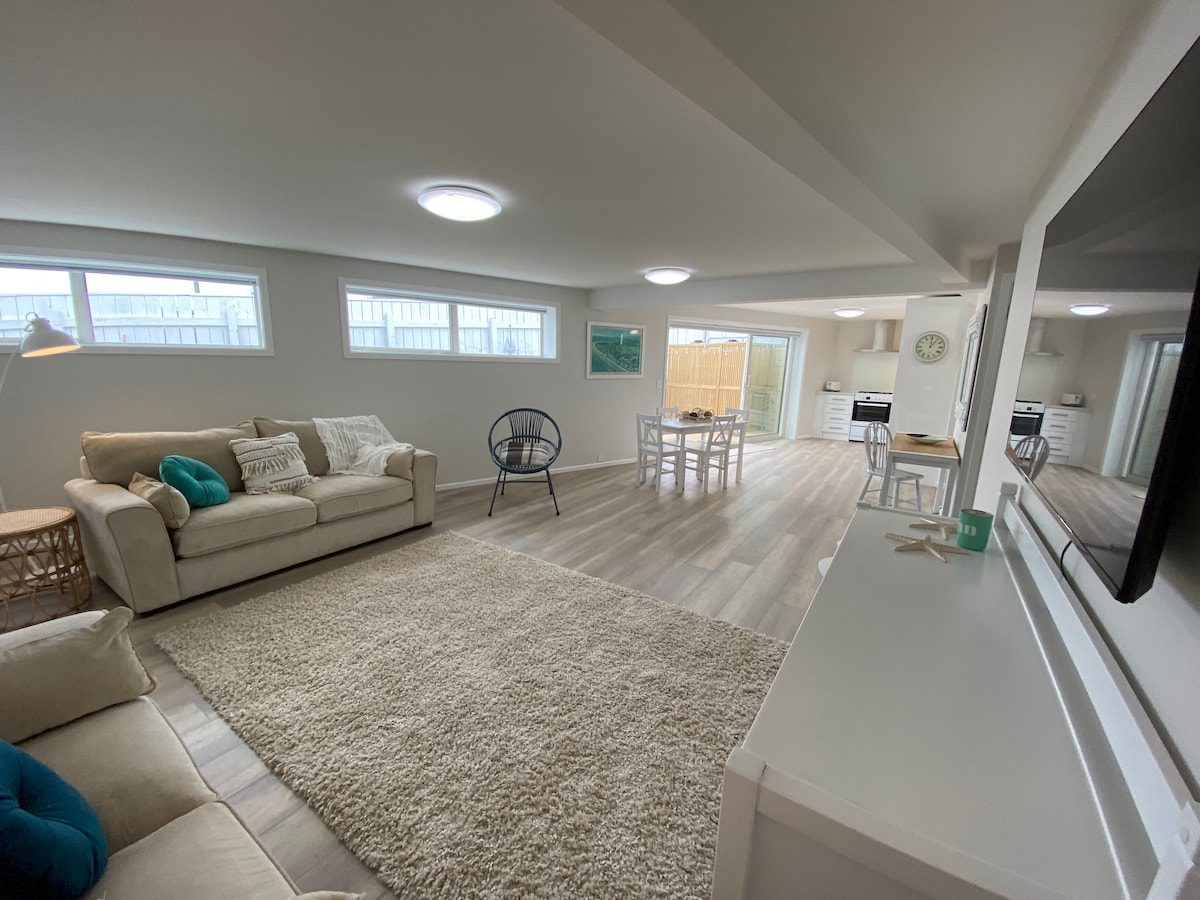 迷人的樓上套房,充滿光線,可俯瞰美麗的海濱村莊。 步行五分鐘即可抵達海灘和伊麗莎白女王公園,這是一個美妙的森林和沙丘環境,非常適合散步、騎自行車、野餐。 距離熱鬧的村莊中心1.5公裏,擁有庫存充足的當地商店、水果和蔬菜商店、3家咖啡館和一家適合家庭的酒吧、火車站、定期音樂演出和著名的懸崖漫步的起點。 搭乘火車或開車前往惠靈頓都很方便。