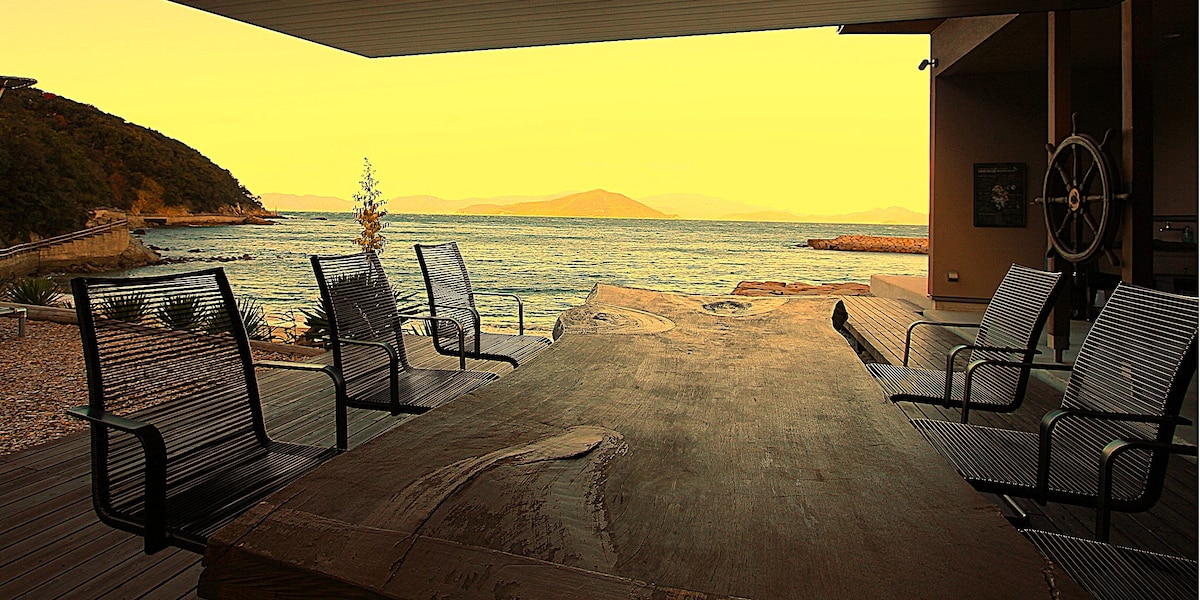 這棟房子建在小島鎮安靜的海濱上。 這棟房子是為了黃昏而建造的,可欣賞大海和日落。因此,對於露臺上有大量樓梯,我深表歉意,但我永遠不能稱之為無障礙。(我會盡力協助搬運行李等。) 然而,在高聳的露臺盡頭,有閃閃發光、平靜和美麗的大海,以及每天都會面對的kane色日落。 忘記您的時間,享受非凡的體驗。 *我們目前不允許寵物入住房源。 如果您想使用此服務,請在預訂前與我們聯絡。 爬上露臺樓梯即可進入室內。不提供無障礙設施。 上下樓梯時,請務必陪同幼兒或成人。 此外,在雨天,有很多樓梯,因此可能會不方便。 旅館前面的道路沒有鋪設。 請注意,這可能會造成不便。 旅館周圍有很多自然景觀,所以肯定有昆蟲。開關窗戶和門時,有時昆蟲會一起進來。(尤其是在夜間,昆蟲會在旅館的光線下聚集)非常抱歉,但如果您不擅長昆蟲,請勿入住。