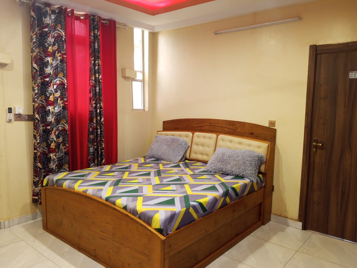 Détendez-vous dans ce logement calme et élégant dans une zone sécurisée. Le logement est composé de deux chambres privée climatisé avec salle de bain privée , placards et d’espaces de vie communes. A l’intérieur de la villa vous avez : - Wifi haut débit -Tv écran plat de 55 pouces smart - un abonnement netflix - un espace cuisine bien équipée (microonde, grand frigo ) L’électricité est à la charge du voyageur. Elle n’est pas comprise dans le tarif de la chambre. À l’instant