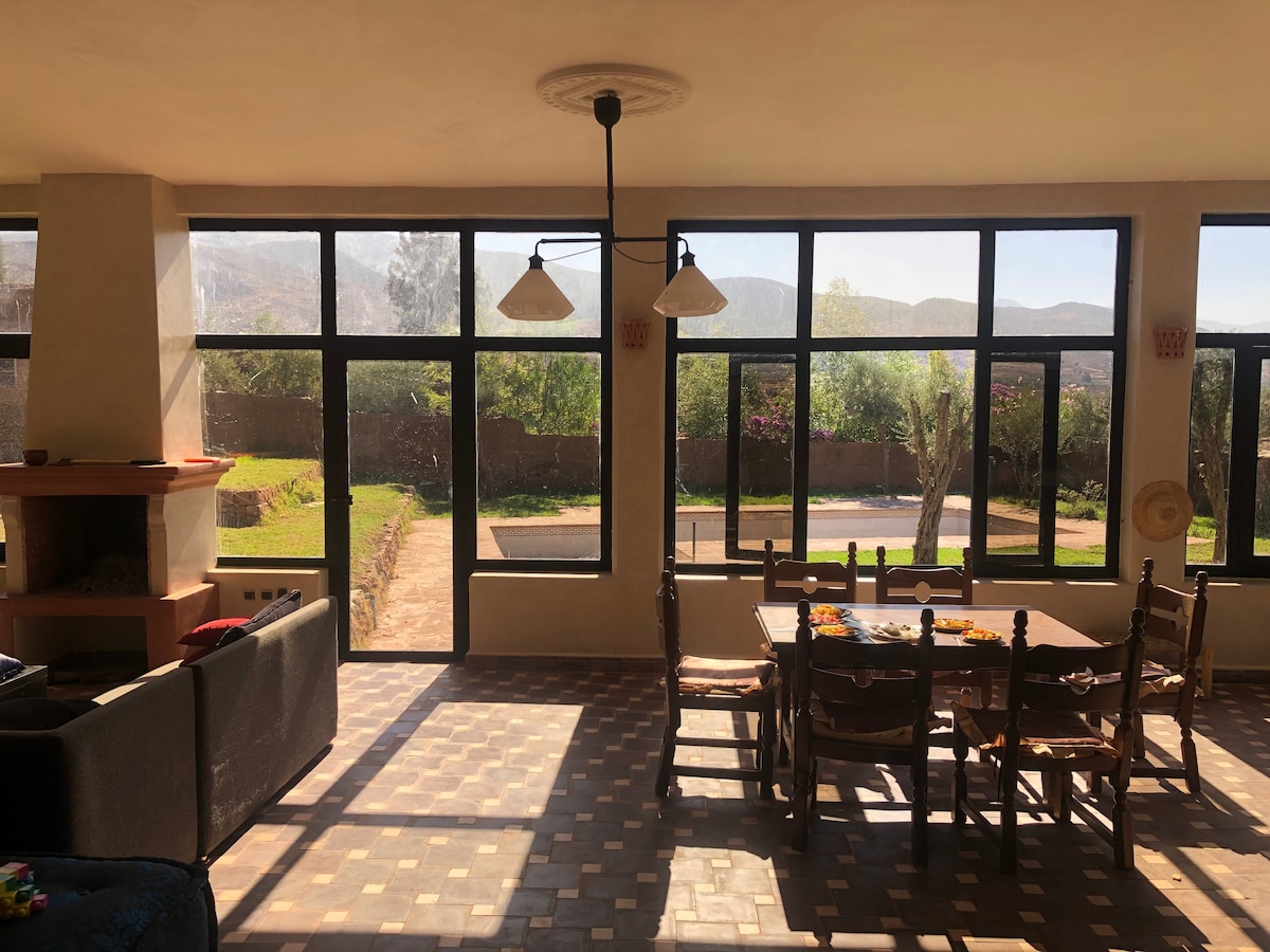 鄉間別墅非常適合尋找風景變化的家庭。 這間迷人的房源坐落在雄偉的阿特拉斯山脈中,提供正宗的度假體驗。 在大陽臺上放鬆身心,欣賞泳池和鬱鬱蔥蔥的花園,非常適合家庭燒烤之夜。 享受寬敞的花園、成人和兒童的私人雙人泳池、農場動物的專用區域和大型蔬菜園。