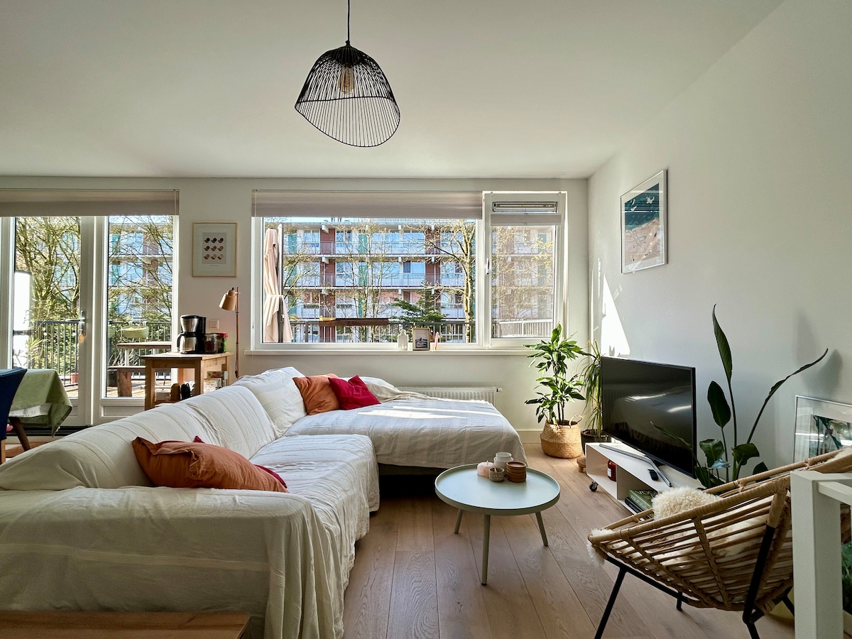Prachtig nieuw 80 m2 recent gerenoveerd appartement in zuid Amsterdam: 2 lichte ruime slaapkamers, perfect voor gezin. Ruime zonnige woon- en eetkamer. Veel licht. Regendouche & bad. Snelle wifi en kabel tv. Weekend free parking! Omgeving Op 25 mtr is een sushirestaurant, pizzeria & kleine supermarkt. Op 200mtr is een grote supermarkt & tram(halte), die je in 15 minuten naar centrum Amsterdam brengt. Op 800 het mooie Amsterdamse Bos met water.