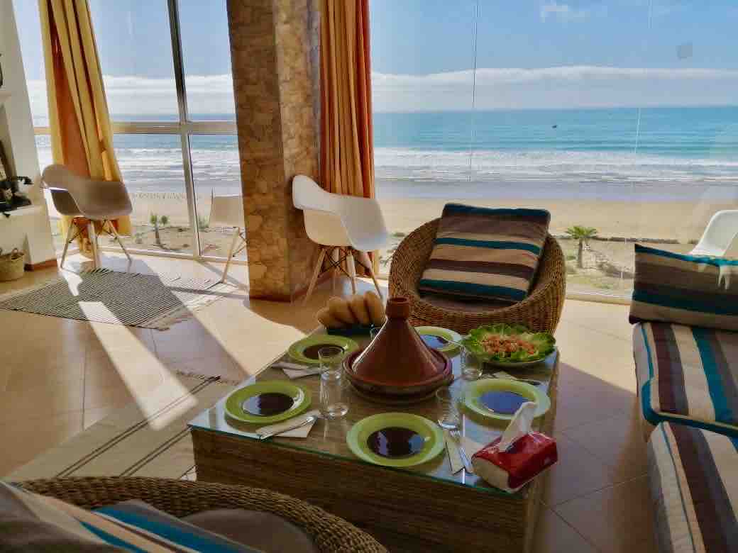 Ce logement unique est proche dRéveillez-vous au son des vagues dans cet appartement lumineux en bord de mer, situé au cœur de Taghazout. Profitez de votre café du matin sur le balcon privé avec une vue imprenable sur l’océan. Cet appartement confortable est idéal pour les couples, les surfeurs ou toute personne souhaitant se détendre face à la mer. À seulement quelques pas de la plage, des restaurants, cafés et écoles de surf — tout est accessible à pied.
