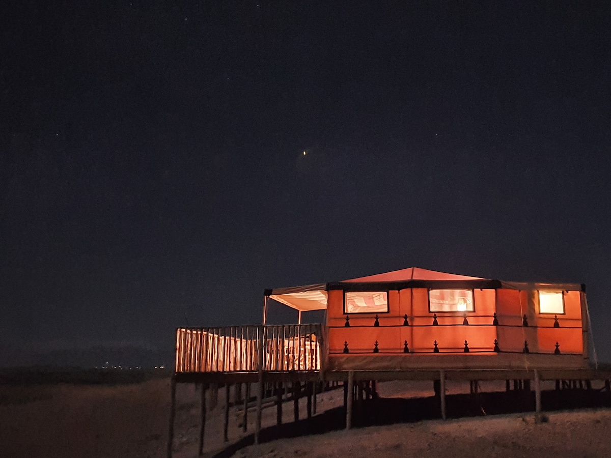 Nkhila Lodge is a unique tented wilderness camp located on a high plateau in the heart of Marrakech's Agafay Desert. A quadruple luxury tented room. We have 5 tents which are situated 15 metres apart to ensure privacy, and enable a unique view of the African night sky.