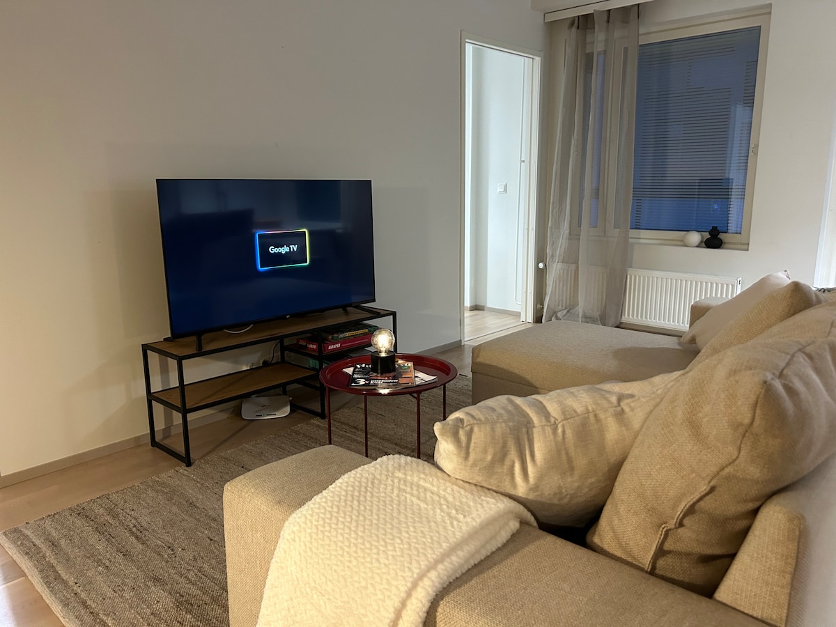 Welcome to the Oulu City Gem! 💎 This bright, modern 35m² apartment is available for up to 4 guests. ✨ It offers the rarest city center convenience: FREE, secure garage parking + paid EV charging. You are steps away from the beautiful Hupisaaret Park and close to all downtown services, making it perfect for both work and leisure. Features a fully equipped kitchen (with tea, coffee!), in-unit laundry machine, and a refreshing French balcony. For your comfort, linens and towels are included.