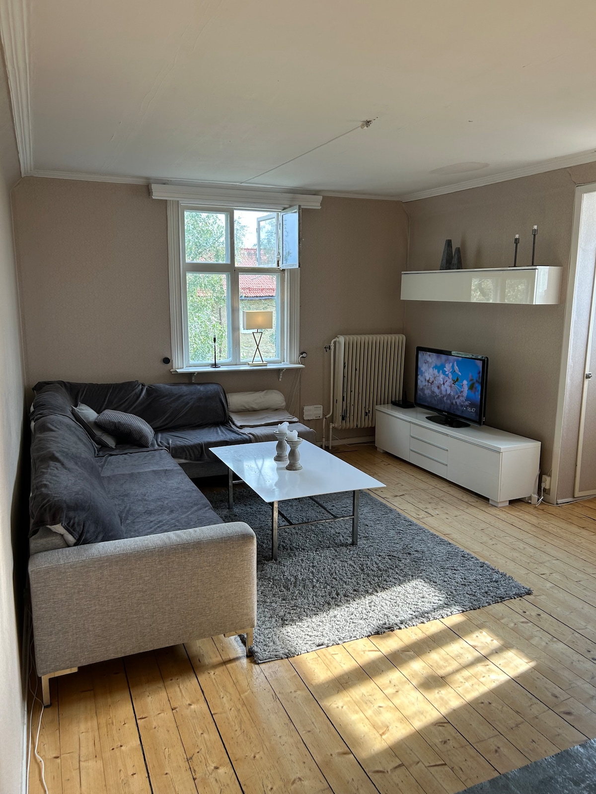 Trevlig kortid boende på 107 kvm.2 sovrum ena med 180 cm säng och de andra en säng ställbar 90 cm och på vardagsrummet två 90cm säng.bastu ingår i priset 1 gång per bokning eller en gång per vecka.Nära centrum ,arena ,parken. Fyrbenta vänner välkomna Finns vara Netflix chromecast på tv. Hundvakt och barnvakt fins.24/7 Ren med ozon efter varje kund. Fins 2 st. Takdusch Transfer till bussen eller tåg finns! Diskmaskin ,diskmedel och DUSCHSET,tvättmedel etc…. är vegansk vanligt.
