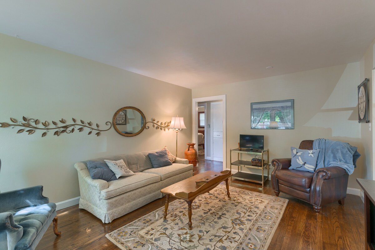 1150平方英尺的房子,兩間配有標準雙人牀的臥室、辦公室、位於市中心安靜街區的獨立用餐區域。 我們允許寵物入住,並透過Airbnb支付45 $的額外一次性費用(每次造訪)。 不超過兩隻狗,我們要求動物不要睡覺或躺在牀上。謝謝!