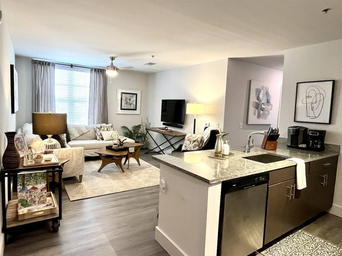 毗鄰雙層巴士舞台! 牛津廣場最好的地方! 在The Graduate對面,靠近歷史區的餐廳和商店。 這套時尚的公寓配備了所有設施。 位置、WiFi、平面電視、硬木地板、不鏽鋼電器、酒吧和優越的室外空間。 在美麗的夜晚享受最佳的屋頂體驗。 地理位置優越,步行即可抵達The GREEN、Vaught- Hemingway Stadium、Swayze Field、Pavilion和Gertrude Castellow Ford Center。