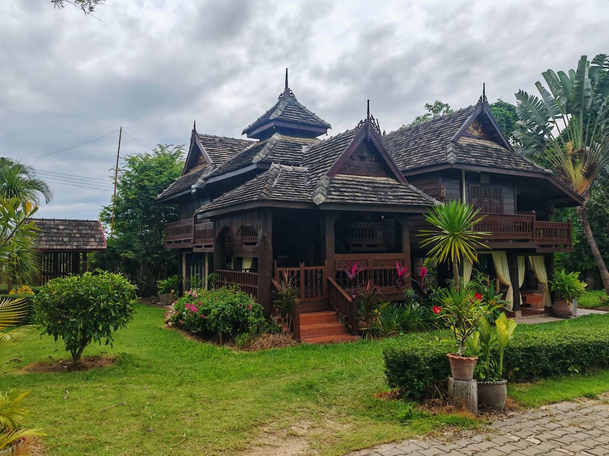 "Baan Tid Nam" The chillest getaway loft house by the Ping river in Chiangmai Quiet, by the touch of Nature. Lovely 4 bedrooms house with shady&chill BBQ space/grill with fishing dock. 2 Master BR with river view. Full kitchen with equipment / Air-con,TV in all bedrooms / Hot shower / Wifi / entertainments (extra bed 200 B / person) Great for full family outing with kids, trip with friends, private party, honeymoon and seminars.