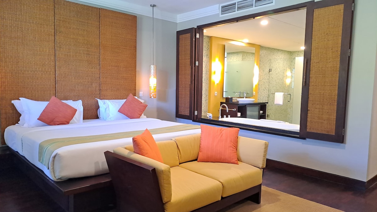 豪華度假村內的私人住宅,被TripAdvisor評為2018年印尼最佳家庭酒店之一。 努沙杜瓦國際旅遊中心185平方公尺、3間臥室、3間浴室公寓。 非常適合家庭或大型團體。 2間特大床房和1間雙床房 2間套房、豪華深浴缸、3間浴室,配有步入式淋浴間 設備齊全的廚房、用餐區域、大型起居區域和陽臺。 空調、所有門都有蚊帳。 微波爐、冰箱、爐具、水壺和烤麵包機 免費WiFi 3臺大電視和DVD播放器 保險箱 免費兒童俱樂部 私人海灘和海灘俱樂部 水療和養生中心 健身中心-免費(包括健身課程) 充分利用所有度假村設施 前往海灘俱樂部和巴厘島精選購物區的免費接駁車 日光浴床可作為額外床位(第7位房客) 如有要求,可提供嬰兒床 我們的司機可從機場接送,價格為150,000盧比。請在預訂時告知。