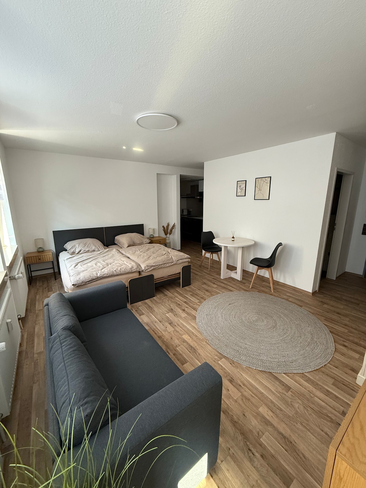 在我們明亮寬敞的70平方公寓享受時尚生活–最多可容納3位房客! 配有高品質的彈簧牀,讓您睡個好覺,舒適的客廳沙發(作為第三張牀) ,為情侶、小家庭或朋友提供空間。 豪華浴室:在配備高品質淋浴的現代化浴室中放鬆身心。 開車或乘坐巴士前往帕德伯恩市中心僅需15分鐘。 您的臨時房源,舒適與美麗的景色相得益彰。