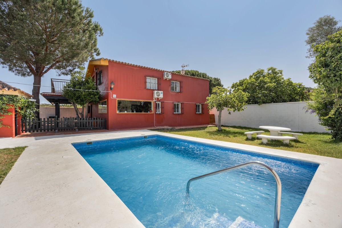具有極佳品質的度假木屋和Chiclana de la Frontera的私人泳池,距離海灘5分鐘路程。 非常適合家庭入住,最多可容納6人。 附近有超市、巴士站、藥房... 不可攜帶寵物:: 它由3間臥室、2間浴室、客廳和廚房組成。 私人泳池、入口處泳池門廊的浴室、有蓋的燒烤和停車位。