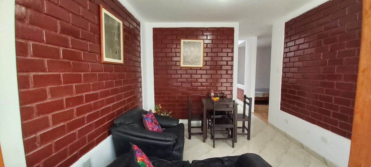 公寓內的房子,非常靠近海灘,可直接通往。 這些空間是: *主臥室牀可供2人入住,配有浴室 *客房配有4張牀、2座2座和2座1.5座、衣櫃、帶鏡子和吊扇的梳妝臺 *全套浴室 *全套廚房,每日餐廳,可容納12人 *帶格子的窗戶和大門 *水箱 *洗衣房 *進入公寓時淋浴 *家具齊全的露臺 * 1臺智慧電視,配備DirecTV * 1臺智慧電視 * Parqueo