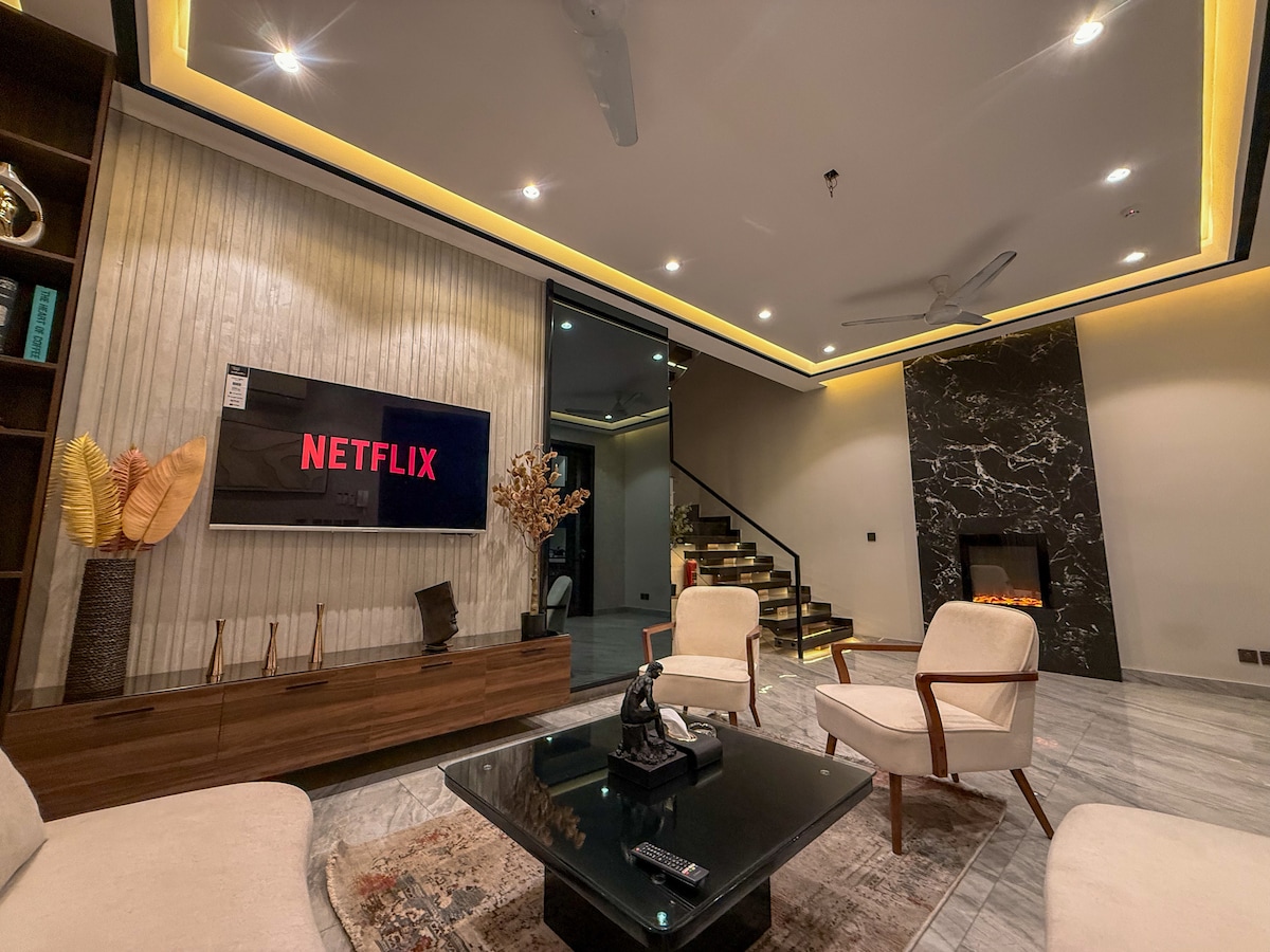 在這個寧靜時尚的空間放鬆身心。這棟優雅的 3 房房源位於拉合爾 DHA Phase 9 Town,讓您享受輕鬆的住宿體驗。 靠近 DHA 第 5、6 階段、Dolmen 商場和 Raya 市場。 每個房間都有空調,讓您保持涼爽;您可以在配備 65 吋 Google TV 的寬敞休息室放鬆身心,也可以在設備齊全的廚房裡下廚。 高速 Wi-Fi 和現代化的舒適環境,讓它非常適合有孩子的家庭、團體或商務差旅人士。 可快速前往附近的商場、餐廳和熱門景點。