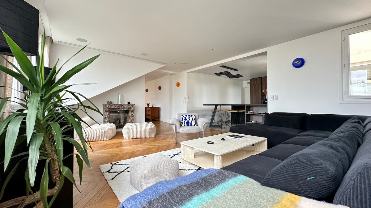 Discover this magnificent 90m² air-conditioned apartment, designed like a hotel suite and boasting a beautiful 25m² private terrace in the heart of Paris's 8th arrondissement. Completely renovated by an architect, it is located on the 5th floor (with elevator) of a traditional building with excellent security. It's the ideal place for a memorable stay in the capital.