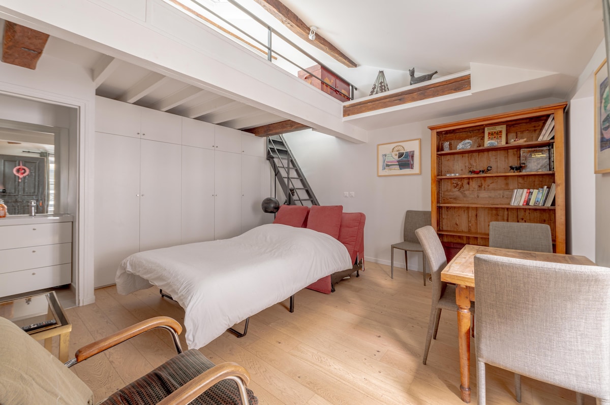 獨一無二的公寓,位於豪斯曼大道( Boulevard Haussmann )旁的9街和2號公寓! 約370平方英尺的翻修包括一個設備齊全的廚房–充滿光線的起居和用餐空間–閣樓區域在大天窗下提供一張1.8米寬雙人牀。 公寓配有空調,可在溫暖的日子保持涼爽。 步行幾分鐘即可抵達時尚餐廳、酒吧和高級商店!6條地鐵線和巴士幾分鐘即可抵達! 我們在抵達/離開當天提供行李寄存服務! 浴室已於 1 月 26 日翻新!