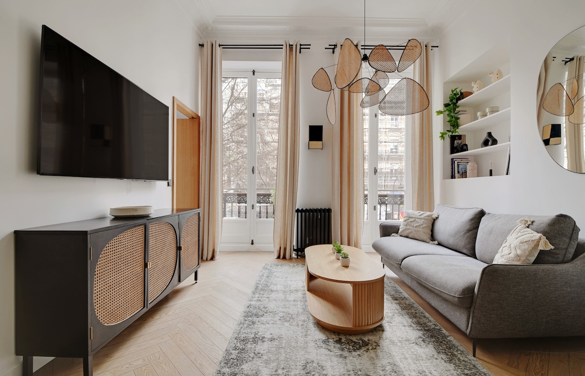 * * * * 此公寓僅供您獨享。 沒有共用公共空間。 它有獨立入口,獨立的浴室和廁所,以及設備齊全的廚房。 * * * * 大樓由門衛全天候保護! * * * * 我們精緻的Airbnb專為高端客戶量身打造,在燈光之城中心提供崇高的體驗。 沉浸在精美的室內裝潢中,令人驚嘆的埃菲爾鐵塔景觀。 您的獨家度假勝地等待著您–擁抱優雅的巴黎生活。