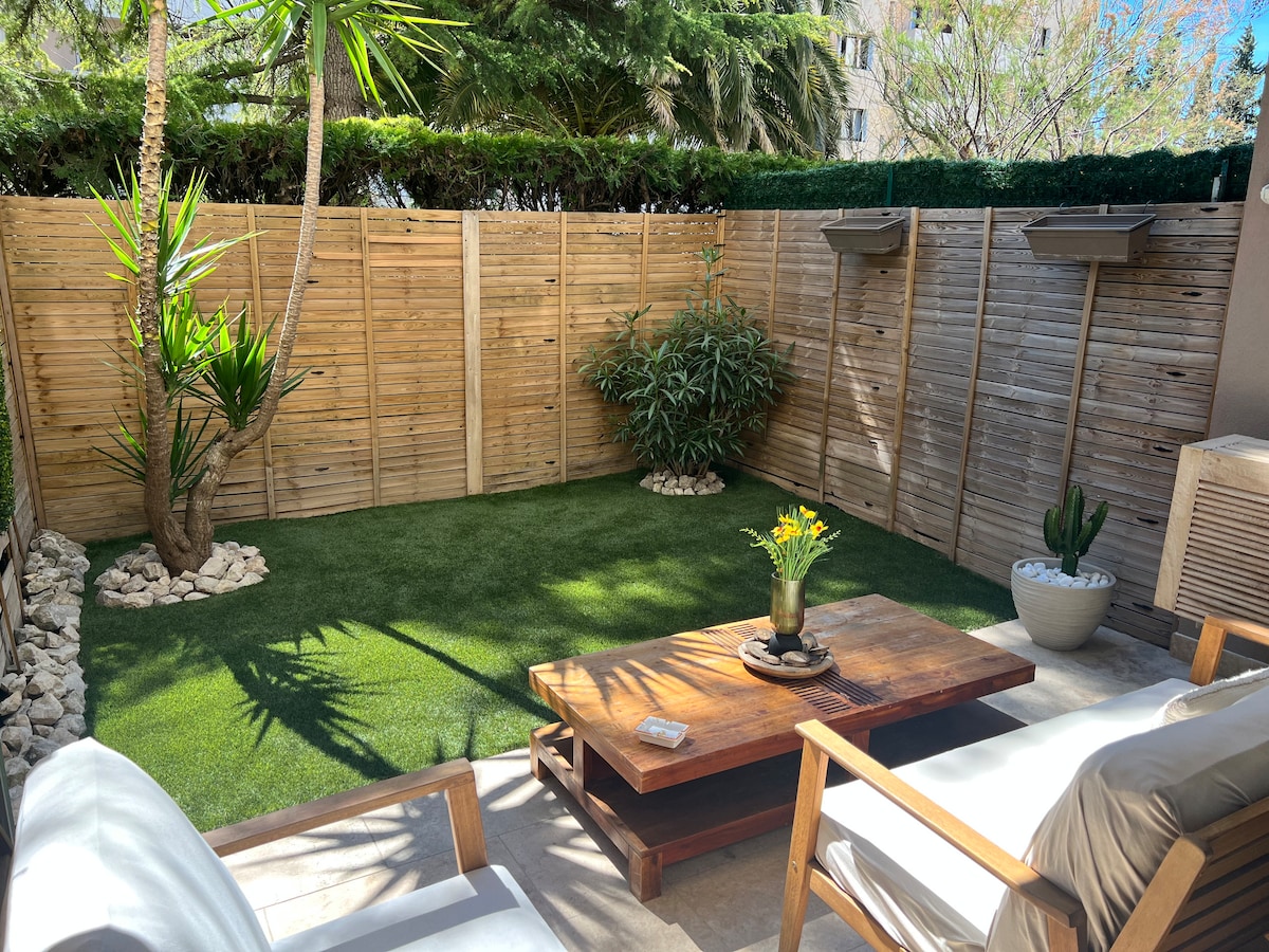 迷人的聯排別墅的一樓,有庭院。 公共交通服務良好(巴士和地鐵)。 此住宿受益於典型的Vauban區安靜的環境, 靠近巴黎聖母院( Notre Dame de la Garde )。