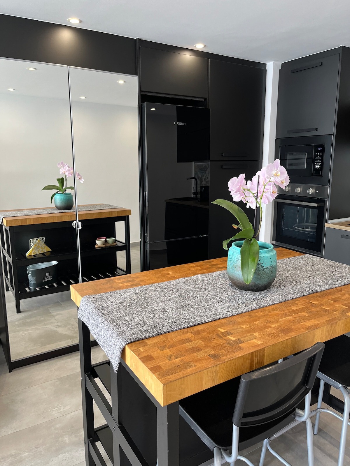 Modern one-floor apartment right by the sea with a fantastic view. Located in a quiet area in the old town with only 5 minutes walk to the main beach, shopping, restaurants, etc. The apartment has all you need and you are close to everything you want to do!