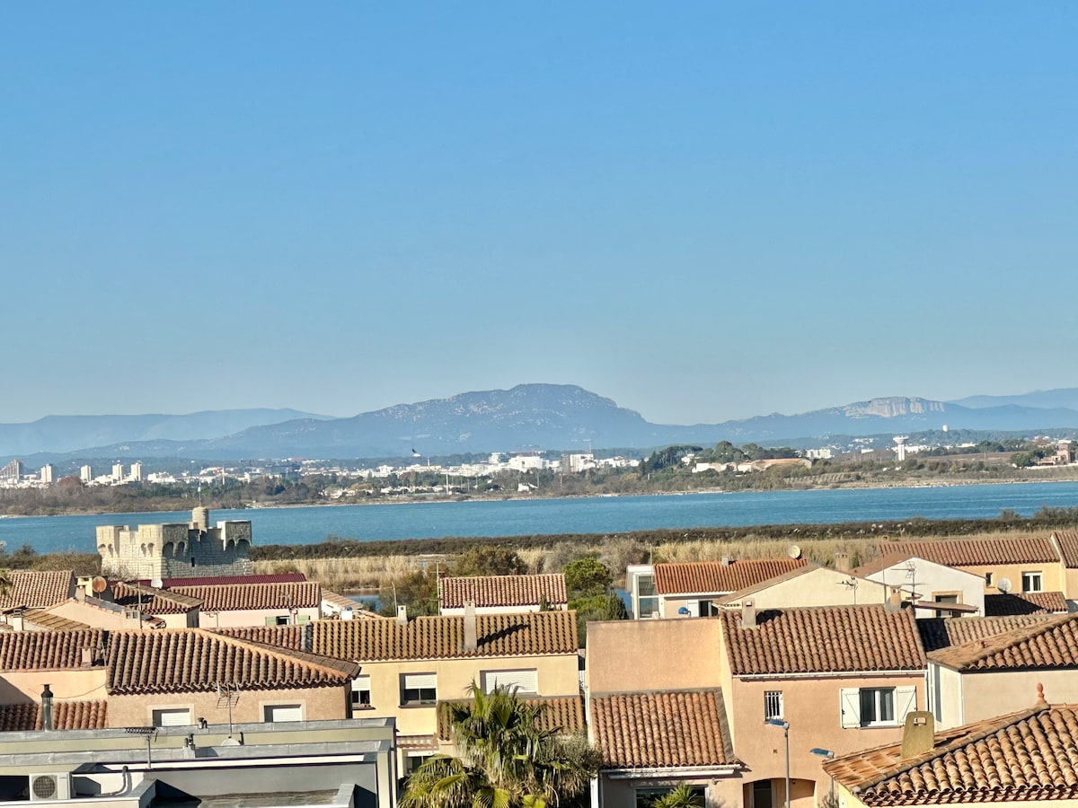 ⁕這間家庭公寓是獨一無二的海景。 ⁕位於安靜的地方,從Les Roquilles ( Carnon )海灘步行幾分鐘即可抵達。 ⁕免費停車 *住宿* ⁕ 2間配有梳妝臺的臥室,牀160和2x90 ⁕現代化廚房、電磁爐、洗碗機、大冰箱、Nespresso咖啡機、水壺 ⁕牀單洗衣機 ⁕寬敞明亮的起居空間,讓您盡情休息。 ⁕ WIFI寬帶⁕ 配有浴缸的浴室 ⁕ 3樓(無電梯)
