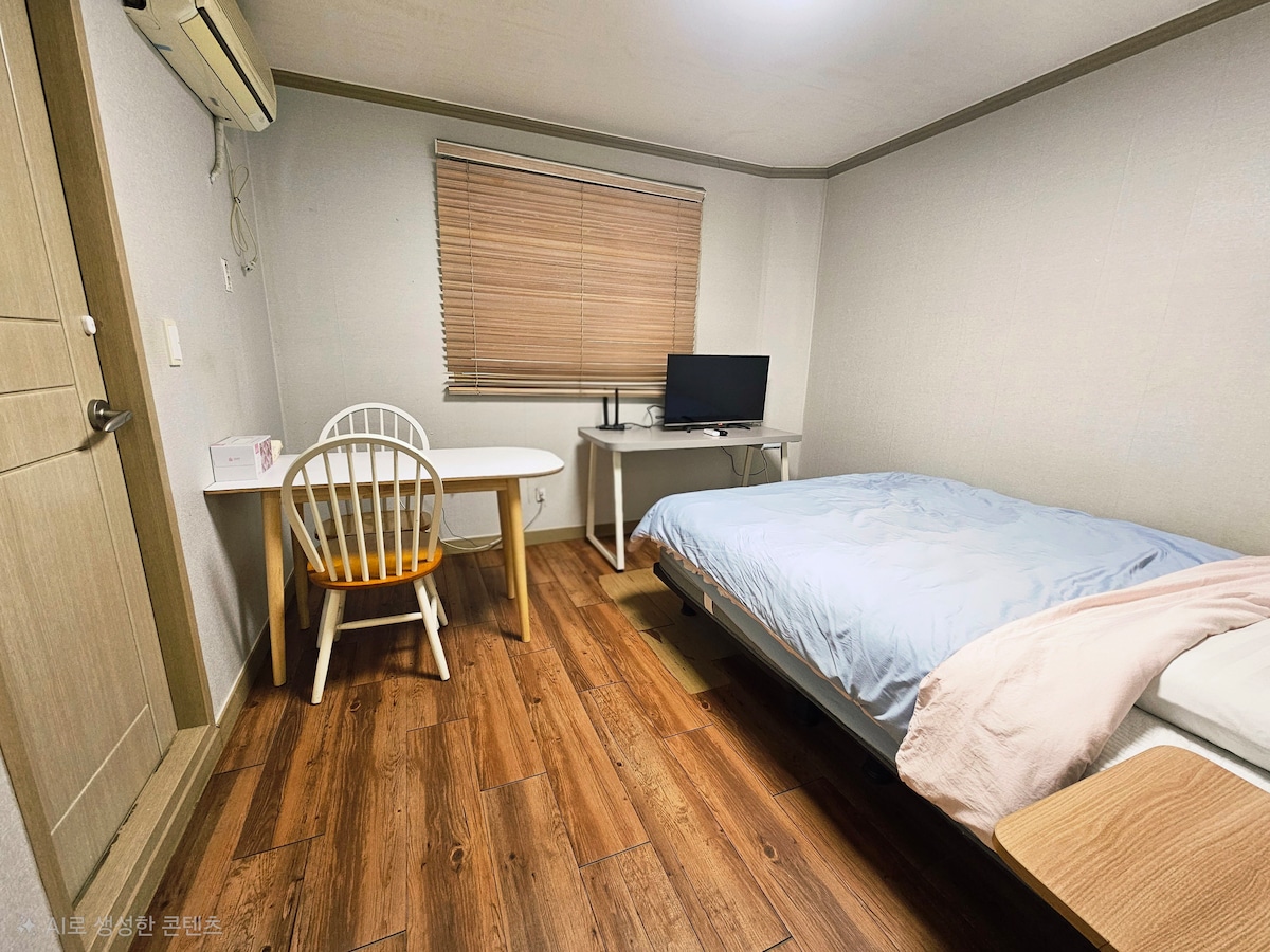 Languages : ํ๊ตญ์ด, English, Deutsch โข 3 min. by walk from Subway station โข 4 Stops by subway from Dongdaegu staion ยฐ ํ๊ณต์ฐ ์ ๊ตฌ๊น์ง ์๋์ฐจ๋ก 10๋ถ ์์ ยฐ ์งํ์ฒ 1ํธ์ ํด์์ญ 4๋ฒ์ถ๊ตฌ ๋๋ณด3๋ถ ยฐ ํธ๋ฒจํธํ , M์คํํ์ฐ์ค, ๋ ธ๋น์๊ฐ๋ผ ๋ฑ ์์์ฅ ์ธ์ ยฐ ์ฃผ๋ณ ํธ์์ , ํํ๋ฌ์ค ์๋ฆฌ๋ฒ ์ดํฐ ์๋ ๊ฑด๋ฌผ์ 2์ธต ์ ๋๋ค :) ๊ธฐ๋ณธ์ธ์ 2๋ช -> ์ธ์์ถ๊ฐ๋ ๋ถ๊ฐํฉ๋๋ค (์ด ๊ณณ์ ์์ ์ฃผ๋ฐฉ ๊ณต๊ฐ๊ณผ ์์ค์ด ๋ธ๋ฆฐ ์๋ฃธ์ ๋๋ค. ์ํผ์ฑ๊ธ ์นจ๋๊ฐ 2๊ฐ ์์ผ๋ฉฐ, ์ ์ค ๊ฐ๋ฅ ์ธ์์ ์ต๋ 2๋ช ์ ๋๋ค.) ๋์ค๊ตํต์ด ๋งค์ฐ ํธ๋ฆฌํ๋ฉฐ ์ฃผํ๊ฐ์ ์์นํ๊ณ ์์ด ์กฐ์ฉํ๊ฒ ํด์ ๋ฐ ์๋ฉด์ ์ทจํ ์ ์๋ ๊ณณ์ ๋๋ค. ์๋๋ฒ ์ ํ ๋ฒํ๊ฐ๋ฅผ ์ ํธํ์๋ ๋ถ์๊ฒ๋ ์ ํฉํ์ง ์์ผ์ค ์ ์์ต๋๋ค. ^_^ *๋น์ผ์์ฝ์ ๋ฌธ์ ํ ์์ฝํด์ฃผ์ธ์*