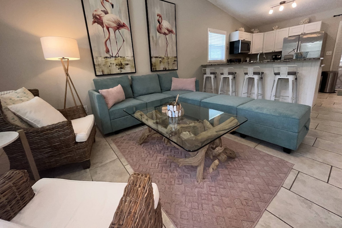 令人驚嘆🌴 😎的基韋斯特風格度假屋,包括: - 記憶泡綿雙人床 -有頂棚的門廊,可供放鬆 -飯店床單、毛巾和許多舒適的設施 入住這間寬敞的兩床兩浴室房源,🏄♂️享受海灘氛圍的裝飾和特色。 距離克利爾沃特海灘(Clearwater Beach)的白色糖沙不到3英里😎(被Trip Advisor評為美國第一的海灘)。 在超大的度假村風格的泳池和俱樂部旁放鬆身心。 步行即可抵達附近的餐廳和雜貨店。
