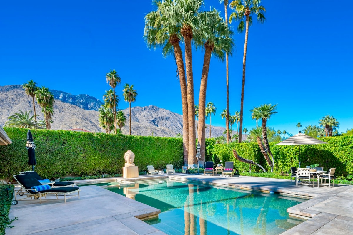 我們新翻修的4間臥室房源是一個開放且通風的空間,為您帶來棕櫚泉最好的生活。我們的房源時尚舒適,配有豪華的家具,讓您放鬆身心,並配備所有現代化的設備與服務,讓您感受像家一般的舒適。從我們的大後院欣賞聖哈辛托山脈的壯麗景色,配有泳池/水療中心、戶外用餐、火坑和乒乓球桌。這是一個非常特別的空間。祝您住宿愉快,並將它變成您自己的沙漠綠洲。
