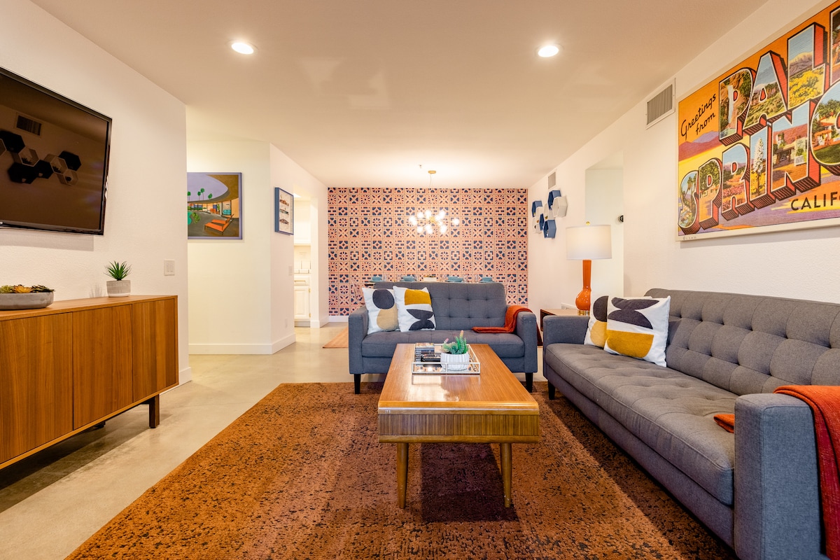 位於棕櫚泉市中心,享受這間新翻修(2023年3月)的中世紀現代兩(2)臥室房源,享受舒適、設施、隱私和風格。 您可以在前花園享受日光浴,在露臺上烤肉和用餐,在前廊閱讀書籍,與朋友一起享用您最喜愛的飲料,同時欣賞聖哈辛託( San Jacinto )和聖羅莎山脈( Santa Rosa Mountains )的迷人景色。 歡迎來到您美麗的沙漠度假勝地。 歡迎來到Kat 's PS Hideaway !