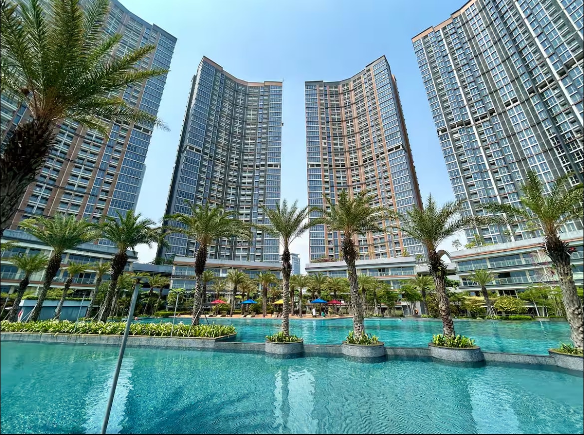 全新單間公寓,位於西雅加達市中心,舒適奢華,提供免費WIFI ,高達50 Mbps 現在開放通往Hub Life Mall和Taman Anggrek商場的連接橋樑。 適合每日/長期住宿預訂。 房源配備了最好的泳池景觀設施,如廚房、浴室、大牀、空調、熱水器、吹風機、抽屜、洗漱用品,設備齊全。 步行即可抵達中央公園購物中心、Neo Soho Mall、Taman Anggrek Mall和Pullman Hotel