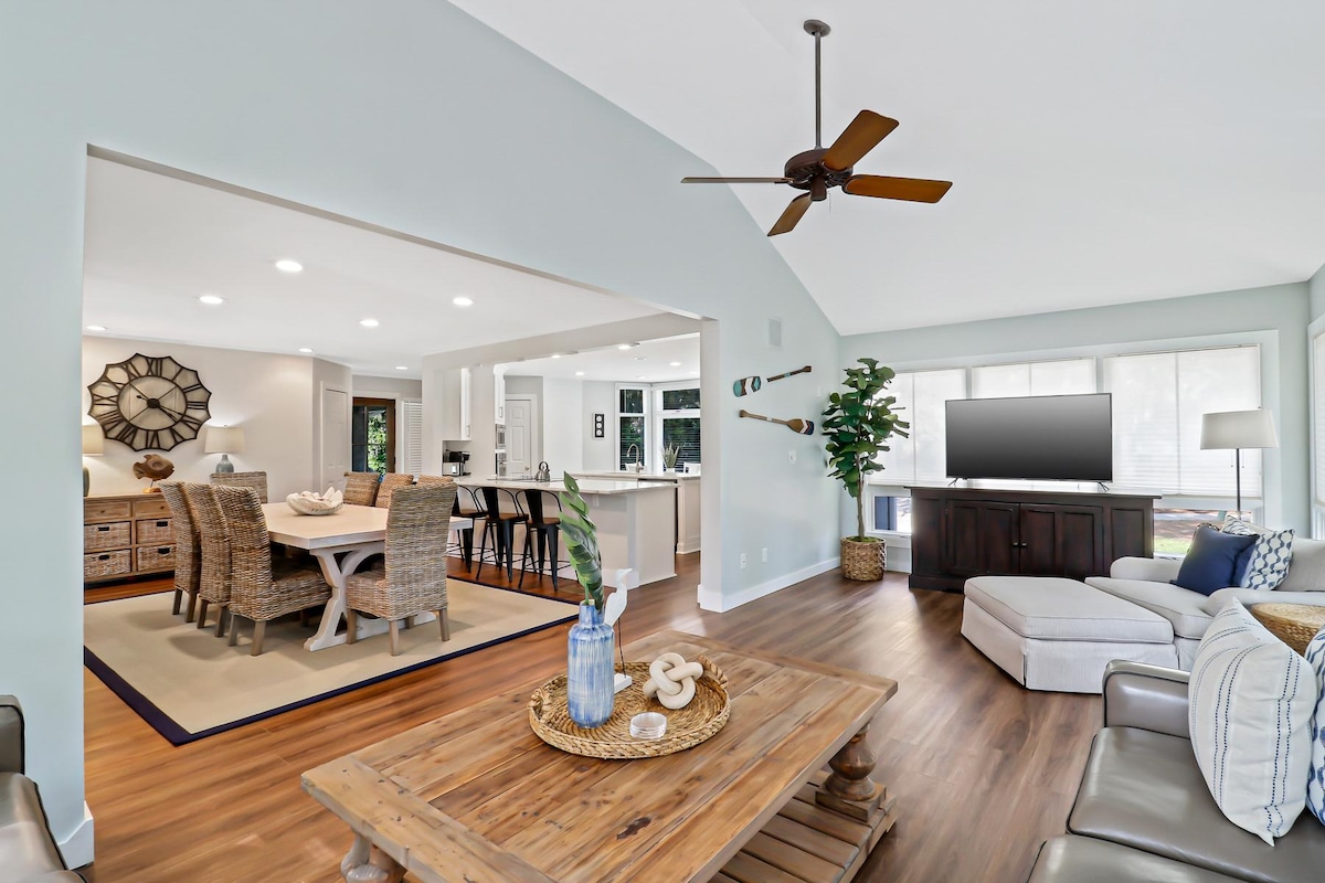 Magnolia & Maple是您升級的度假勝地。 週六至週六出租。 房源配有高速網路的書桌、客廳環繞音響和更新的裝飾。 這間3間臥室、2間浴室的房源坐落在一條安靜的街道上,提供在私人溫水泳池放鬆身心的機會,步行/騎自行車3/4英裏即可抵達PD著名的海灘,或在網球、高爾夫球或匹克球一起鍛煉。 靠近Shelter Cove購物和用餐。 HHI是一個適合行人和自行車的區域,有很多好玩的事。