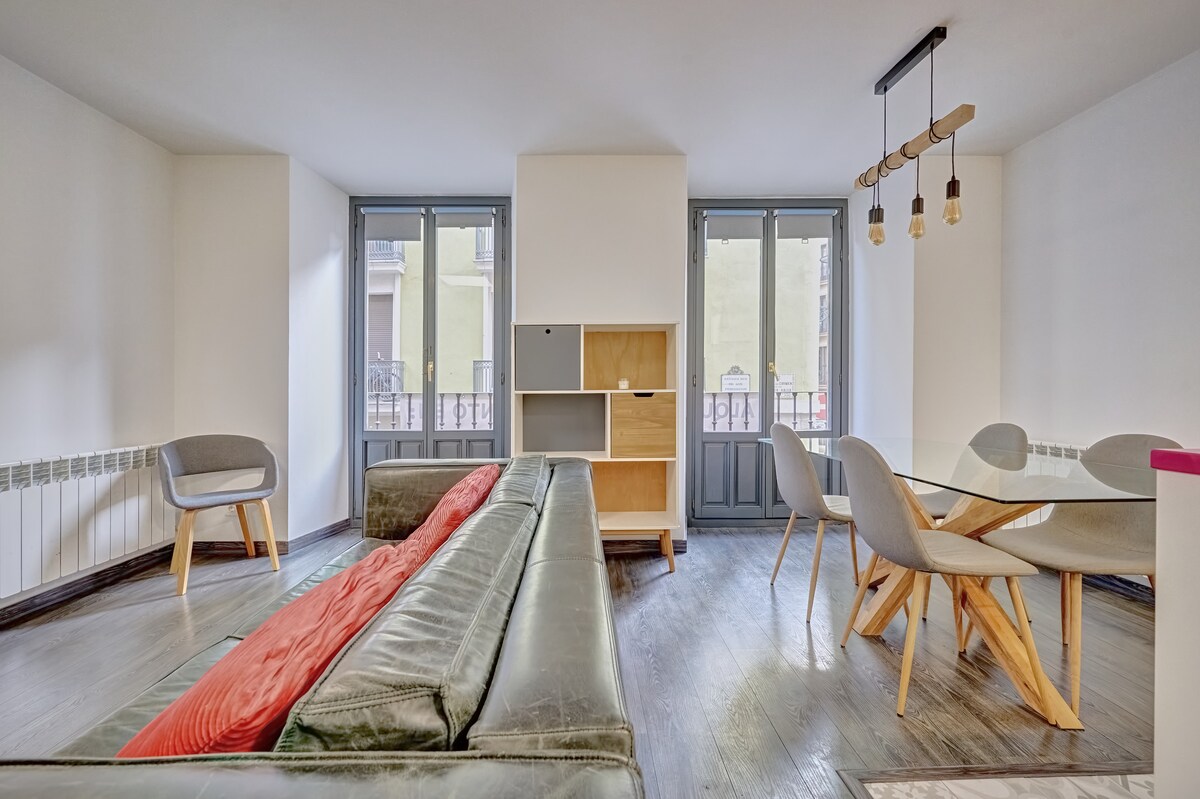 Welcome to The Navarro Suite – Hosted by the Owners since September 2025, your home in the heart of Pamplona. This modern and bright apartment is perfect for groups and families, accommodating up to 6 people. Upon entering, you will be greeted by a spacious living-dining room and a fully equipped open kitchen, where you can enjoy moments of togetherness and prepare your favorite meals. The comfortable sofa bed in the living room provides additional sleeping space.