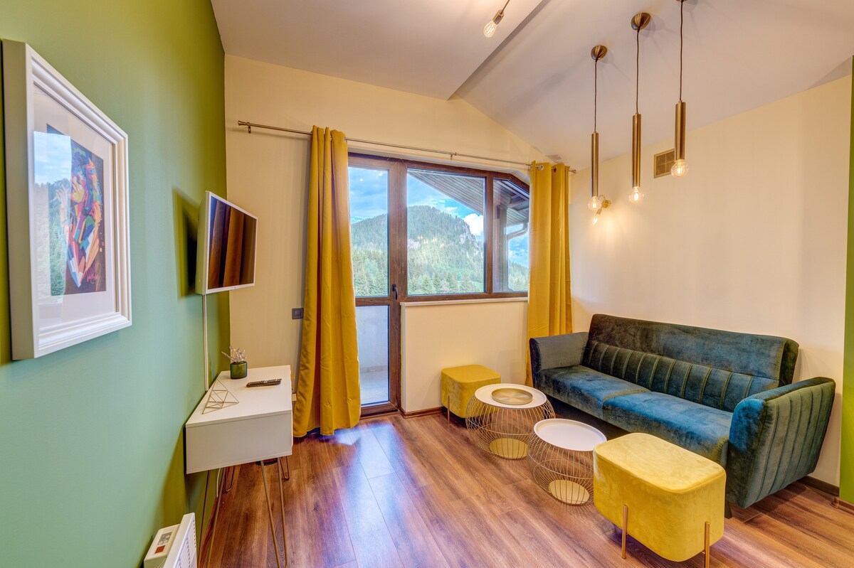 遠離日常生活,沉浸在位於豪華「城堡」-潘波羅沃的設備齊全的單間公寓中,沉浸在美妙的氛圍、舒適和寧靜中。 如果你喜歡在山上滑雪或徒步旅行,這裡是理想的地方。 該建築距離Studenets 300公尺, 7號滑雪坡就在旁邊。 風景如畫的大自然、鬆林和Snezhanka山峯的景觀讓公寓獨一無二,度過難忘的住宿體驗。