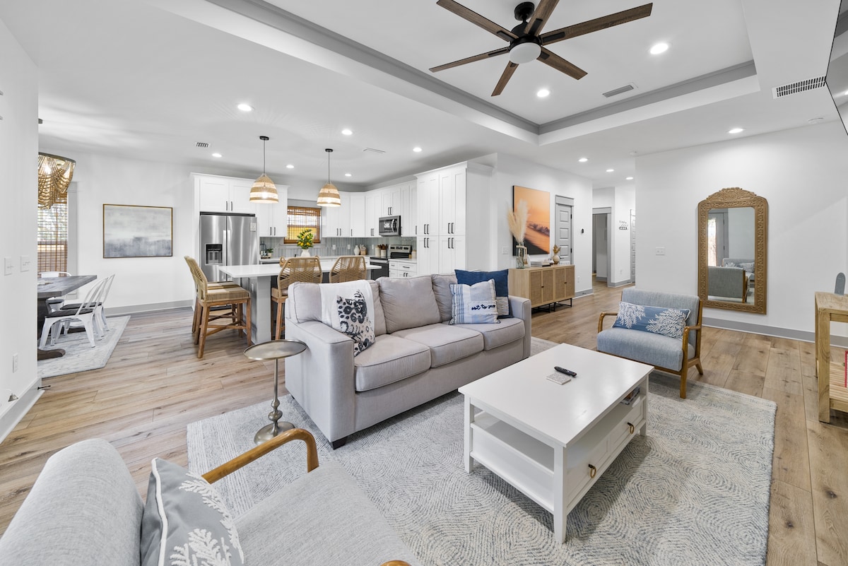歡迎來到我們獨一無二的海灘度假勝地! 愛上我們時尚的房源、私人跳水泳池,並快速步行前往海灘! 在水上或商店度過一天後,在陽臺上享用雞尾酒。 充分利用快速的WiFi! 這個房源距離碼頭公園(Pier Park)8分鐘車程,距離羅絲瑪麗海灘(Rosemary Beach)和30A 10分鐘車程。 詢問租用我們的6座高爾夫球車,價格為125美元/天 支付170美元寵物費即可攜帶狗狗入住;最多3隻。 提供泳池供暖: $ 40/天詳情如下。