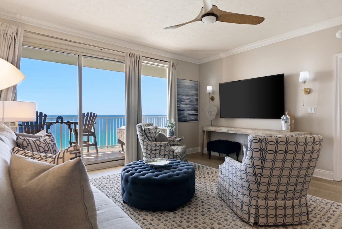 我的快樂之地| 2 間臥室 + 雙層床房/2 間浴室 15 樓公寓,可欣賞史詩般的海灣景觀! 免費海灘設備(2 把椅子 + 1 把陽傘,2026 年 3 月至 10 月),以及 8 把以上的額外椅子、3 把以上的陽傘、玩具、書籍和遊戲。 想像一下,您可以在陽臺上休息,在泳池中玩水,或在日落後烤晚餐! 超快的WiFi、4臺電視、洗衣機/烘乾機、設備齊全的廚房和陽臺烤架。 度假村按摩浴缸、火坑和良好的氛圍。 50美元度假村通行證(0–1輛車/住宿), 100美元2輛車。 週末的預訂很快就被訂滿了,平日價格更具吸引力!