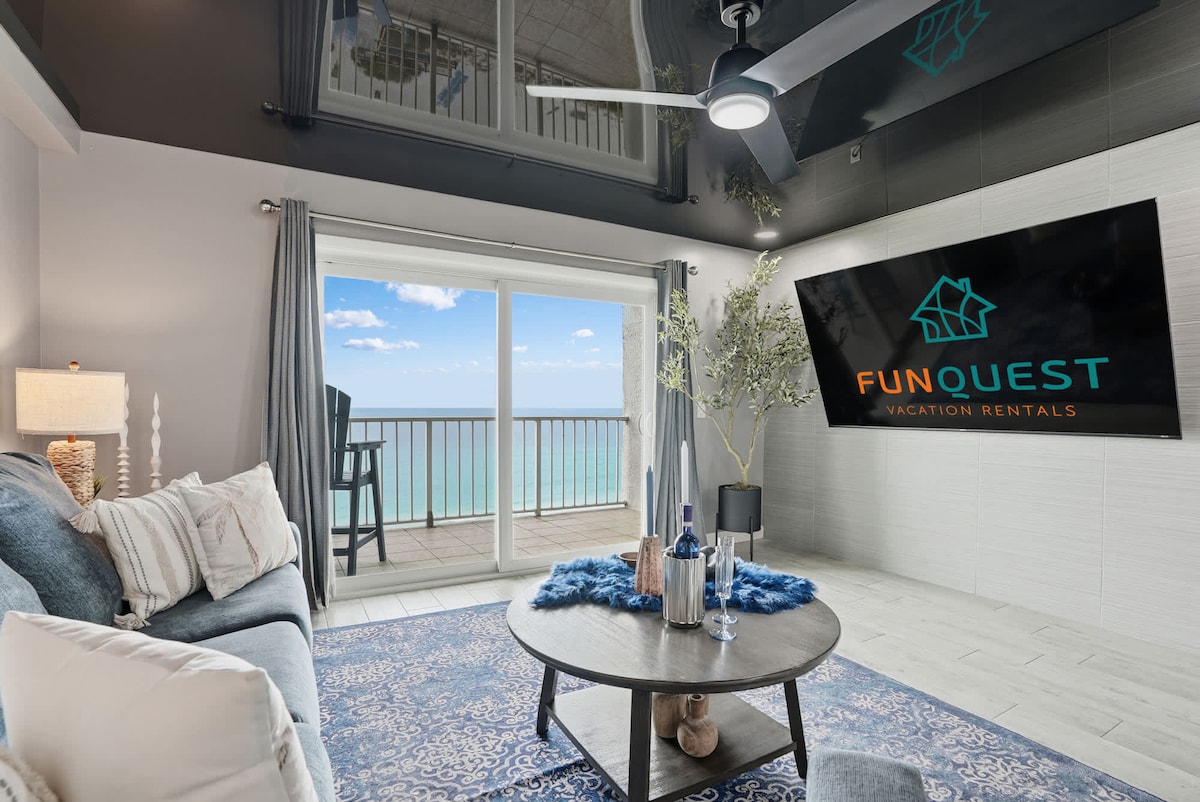 🏝 PCB最佳 從🏝主臥室醒來,欣賞壯麗的海景,步入私人陽臺,俯瞰海灣的壯麗日出。喝杯溫暖的咖啡,欣賞翡翠色海水的寧靜美景,開始新的一天。晚上,您可以喝一杯葡萄酒,放鬆身心,同時看著海豚優雅地游過。直接踏上糖白色的沙灘,展開您的躺椅,沐浴佛羅里達的陽光。完美的度假勝地