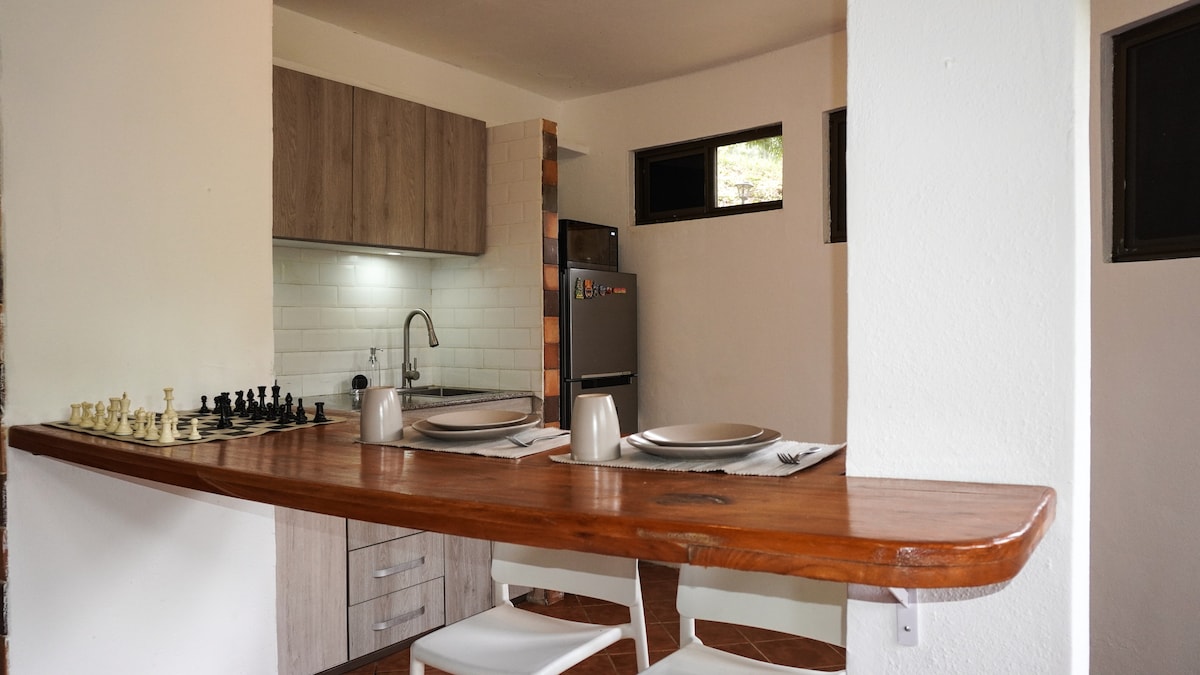 探索 Rancho Ahome,這是一個位於里約哈托的寧靜 2 臥室 1 浴室客用住房。遠離喧囂,享受寧靜,距離美麗的海灘僅5分鐘路程,並享受我們的私人泳池和瀑布。在永續農場中沉浸在大自然中,這裡有水果、兔子和雞。Rancho Ahome非常適合那些尋求和平和環保度假勝地的人,在令人驚嘆的景觀中融合了舒適和冒險。體驗一個靠近大自然但充滿舒適的寧靜聖地。我們歡迎寵物入住。