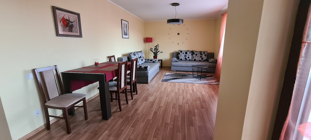 全新裝潢的公寓,讓您度過愉快的時光、休息、浪漫的夜晚或商務差旅。 在公寓內,您可以找到所有必要的工具(電視、WI-FI、碗碟、鍋具、煎鍋、乾淨的牀單、毛巾、吹風機。在長期住宿期間,洗衣機將為您提供完美的服務。