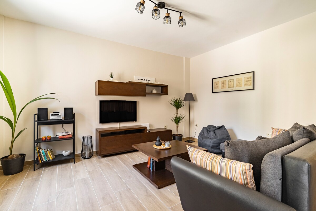 位於經典雅典公寓大樓二樓(電梯)的精美兩臥室公寓,配有全套浴室和獨立廁所。 位於時尚的帕格拉蒂(Pagrati),步行即可抵達市中心和主要景點,靠近地鐵(M3機場線)。 裝潢精美,配有原創現代藝術品、獨立中央暖氣和空調,全年舒適,配有蚊帳、豪華臥室和浴室。有線電視和Netflix、頂級電器、洗衣機/烘乾機。 遠離家鄉的舒適住處。