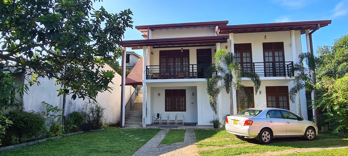 最多可容納4人:適合家庭、情侶和女士入住。 兩間配備空調的臥室、套房衛浴(有熱水)、舒適的客廳、餐廳、廚房、WiFi、獨立入口和一輛車的停車位。 輕鬆前往公共交通工具、機場(約1小時)和科倫坡市中心(約20分鐘)。步行5分鐘即可抵達超市和商店,開車5分鐘即可抵達餐廳。