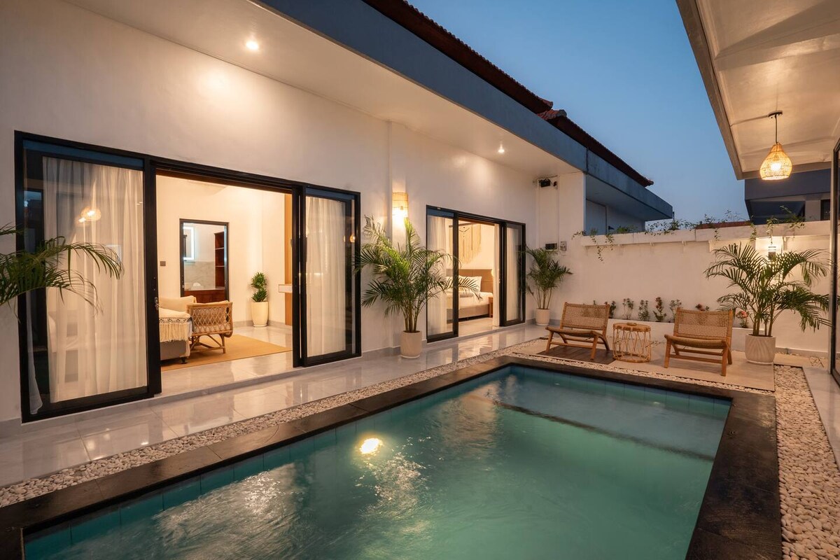 入住我們全新的 1 間臥室別墅,配有私人泳池,位於 Canggu 中心的絕佳位置,這是情侶或獨遊旅客的完美別墅,他們喜歡探索 Canggu 的著名景點。步行3-5分鐘即可抵達很棒的餐廳、商店、健身房、共同工作空間、普拉提、咖啡廳和酒吧。距離著名的海灘僅幾分鐘路程,如Nelayan、Batu Bolong、Canggu Beach,這間別墅配有豪華的加大雙人床、套房浴室、廚房、泳池、客廳和開放式起居空間,可在私人泳池旁放鬆身心